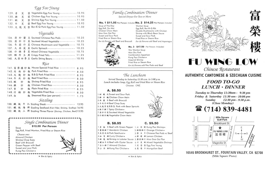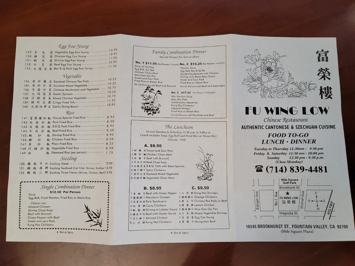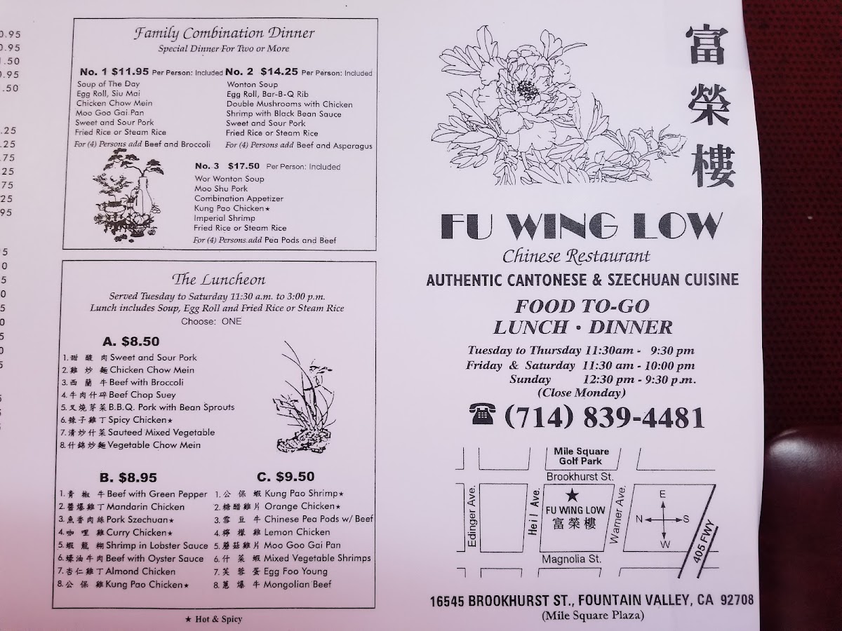 Whether you're dining in or opting for takeout, Fu Wing Low promises an authentic experience that transcends your typical Chinese food outing. With great portions, quality dishes, and an attentive team, it's no wonder this spot has earned its spot as a favorite in the Orange County area. Embrace the chance to indulge in their culinary offerings, and you may just discover your new go-to Chinese restaurant!